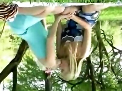 لزبین مو بور نوار هر یک از دیگر در جنگل قبل از