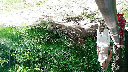 старую сексуальную шлюху-автостопщицу с улицы трахнули в лесу с презервативом, а потом без него