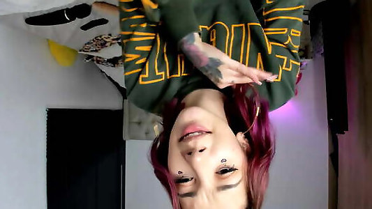 tattooed woman is dancing with meaty boobies juggling