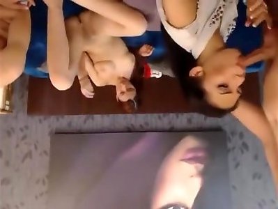 Unexperienced girl-on-girl whores gobble beaver in reality groupsex