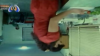 Stepmom is surprised by her son-in-law and sticks her big jizz-shotgun in the kitchen