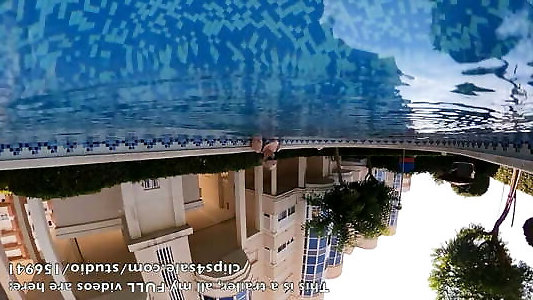 piernas cruzadas clímax en la piscina al aire libre