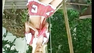 Chica rubia en un columpio