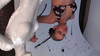 increíble adolescente alemana consigue sus pequeñas jarras cubiertas de esperma