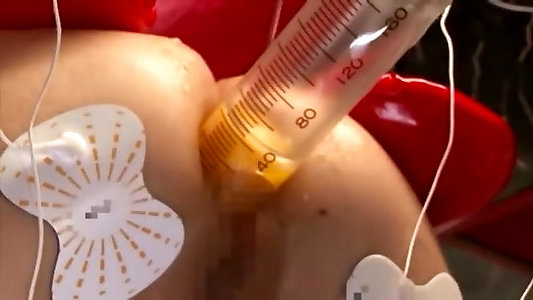 Reina lez tecavuz gets wand and injection needle with jizz in her