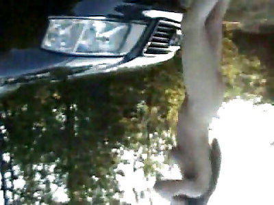Finger-banging on top of her audi