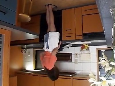 Ayaka Fujikita gets her labia toyed to ejaculation in the kitchen