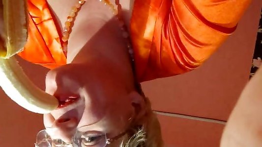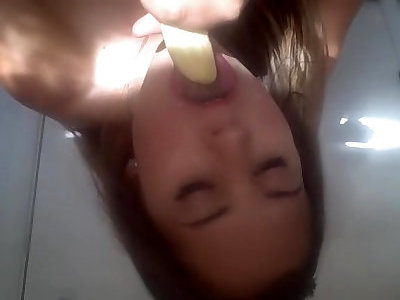 Dildoing and gargling a banana