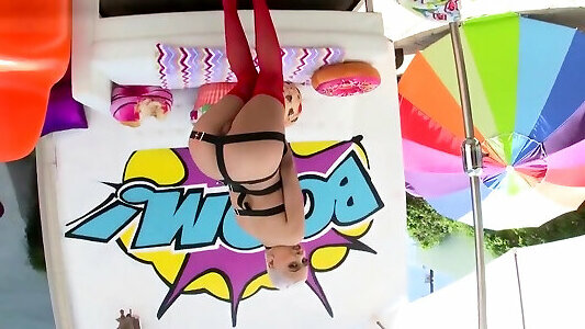 Lena Paul getting her vulva pound sideways by rennie pies Mancinis long lollipop!