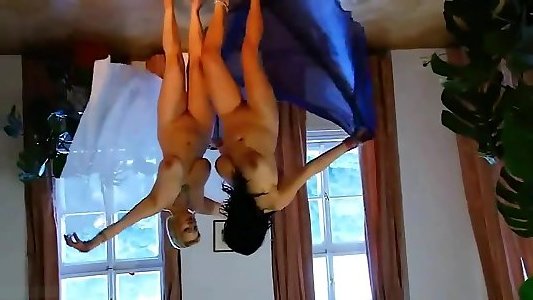 Yellow bondage suit and hardcore lesbain cheerleader to the music.