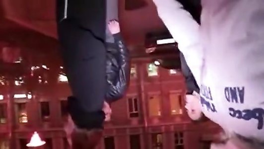 Duo pounding in hotel window across from hair plait office palace