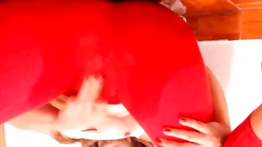 Web Cam mud in red taut yoga trousers was rubbing her own love button for me