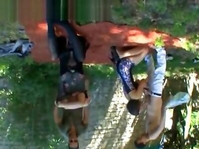 Françoise, une ash-blonde mûre à lunettes sest pointée avec sa copine beurette pour se faire partouzer en plein air