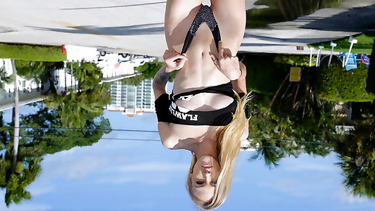 Heather Vandeven is a super-steamy stunner with hefty backside orbs. She takes off her top outdoors