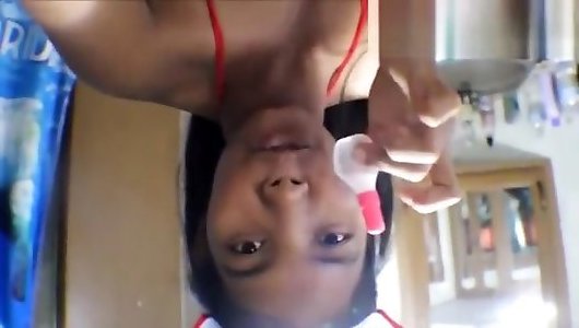 heather in red lingerie gargling
