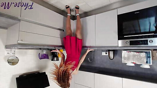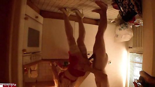 Warm Long-legged Cougar in Tights and High-heeled Slippers Plowed in Kitchen
