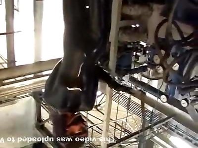Woman Get Held & Vibrated In Black Spandex laugh bf Leather Fetish Mask & High