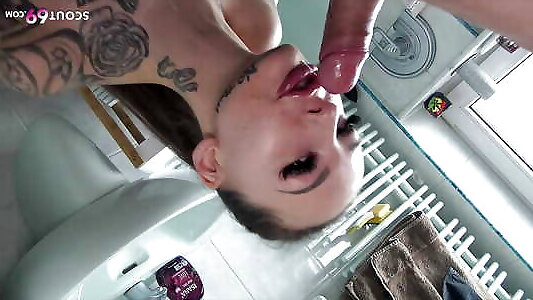 Skinny German Inked Teen adik fi 3a44 kak Bones have Sex with the Repairman in Bathroom