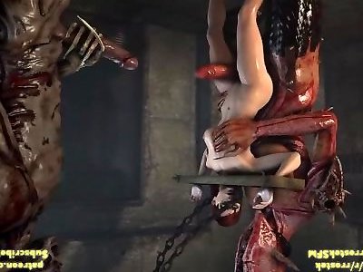 Nymph Shepard and vibr pussy fiercely pulverized by Three Dimensional Demon Monsters