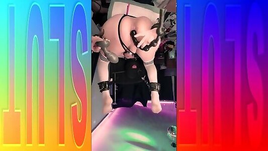 mikki is spun, masked and dual-toys vagina