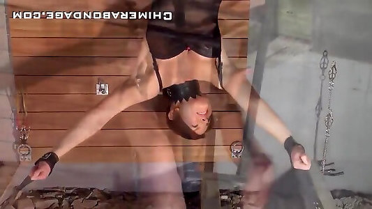 Suspending strass doublle diks sex & zooming naked soles & feet.Two