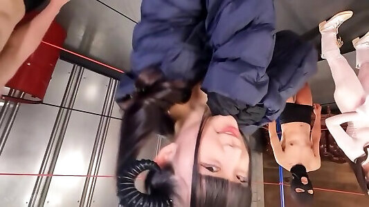 Nana nake guys wrestling crazy Japanese student in super hot costume play pounding