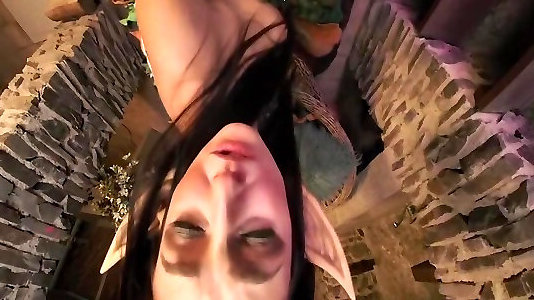 Asian costume play bombshell as cum-gulping dark elf