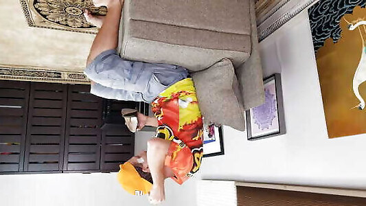 Catching Cougar mom who pawing her pearl up against cushion