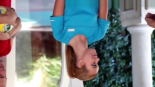 Blinding ginger teen kick balls phone dance have fun with her vagina