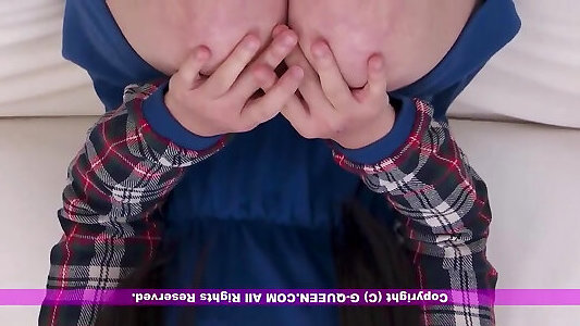 Kasumi Uehara with specs plays with her slit