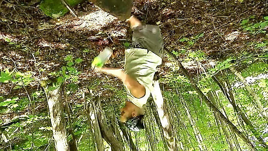 My roomie shoots a load while I peg him with a wire-on brief version