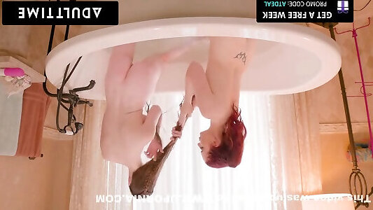 ADULT TIME - Brunette Stepdaughter Hazel Moore Simps Over Redhead Stepmoms Wet Pussy In The Bath!