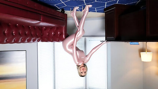 Buxomy Blond Teenage Working Out In Cock-squeezing Blue Latex. Juggle!