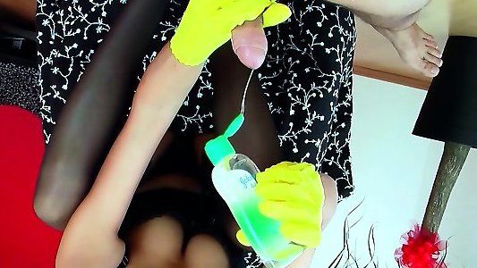 German Femdom Teenager Drool and Mittens Handjob Slave Shaft in Point Of View