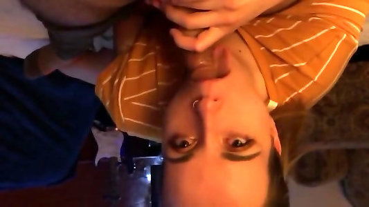 STONER Wifey enjoys deep throating husband’s pecker Swallows munches up jizm