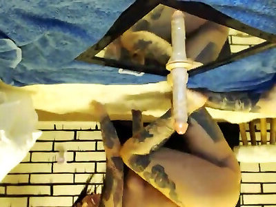 This nasty great bootie inked cam babe luvs riding her suction cup faux-cock