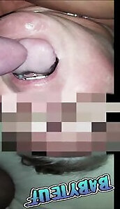 A chubby gf of my wife bjed my meaty dick that I ended right in her gullet. Juice in the gullet