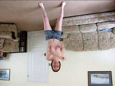 Topless dance taunt in denim cutoffs