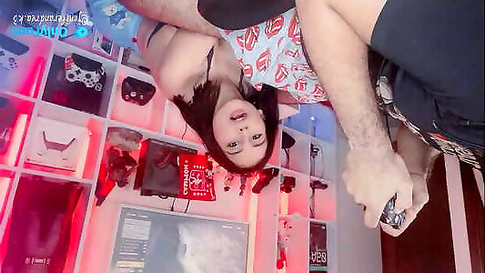 Gf interrupts videogame to inhale and touch beef whistle with her feet