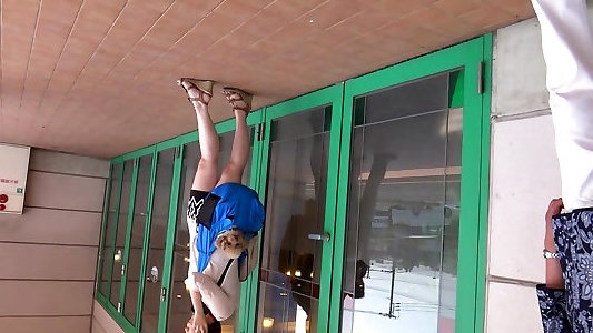 Chick walking outdoor in extremly brief dress and heels