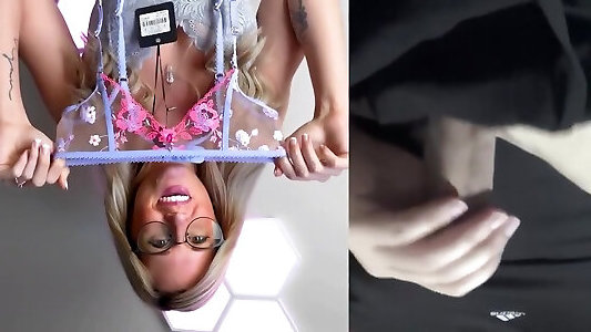 reagieren: nerdiges sportküken in einem prächtigen unterwäsche-anprobe