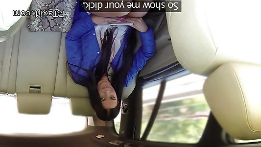 تاکسی جعلی خیره کننده لباس زیر زنانه مدل خوشحال است که سخت سریع رابطه جنسی با راننده