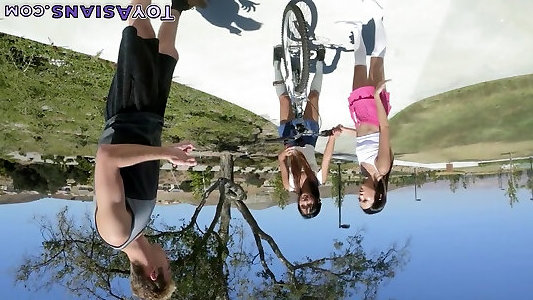 دختر زیبا سواری یکی دیگر از بزرگ دیک