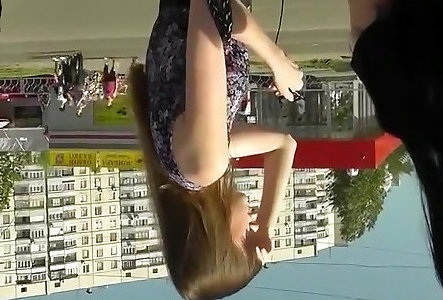 Upskirt در حالی که نرده های گاو