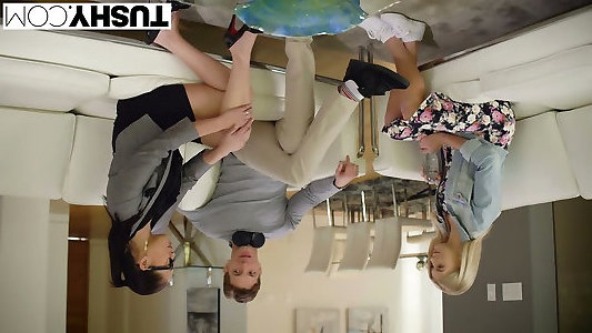 ultra-carino bianco auburn, biondo babe si veste come diavolo e le visite di un compagno di orgia converse