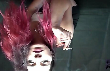 feticismo del fumo. domme nika fuma lussuoso e bava in un bicchiere. immagina che questo bicchiere sia la tua bocca