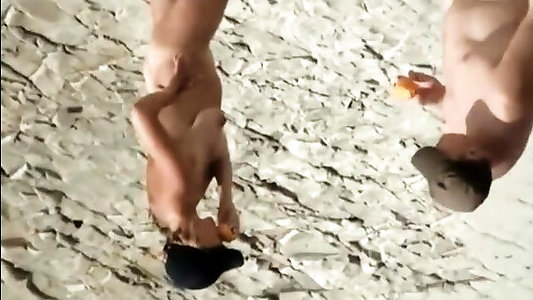 fresco zenzero michelle corre nudo sulla spiaggia in vacanza con gli amici