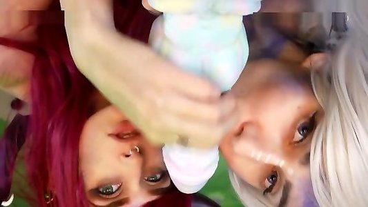 due milfs in rosa scarico sperma in una provetta