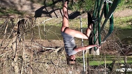 brilliant red-haired czech nice ambles nudo in public park