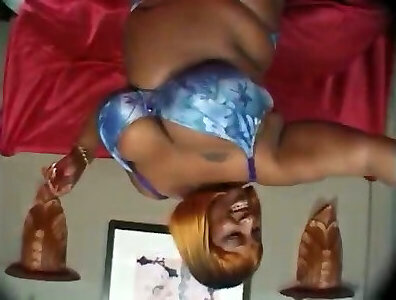fit ebano signora con tette funbags di testa su 2 lattea peckers